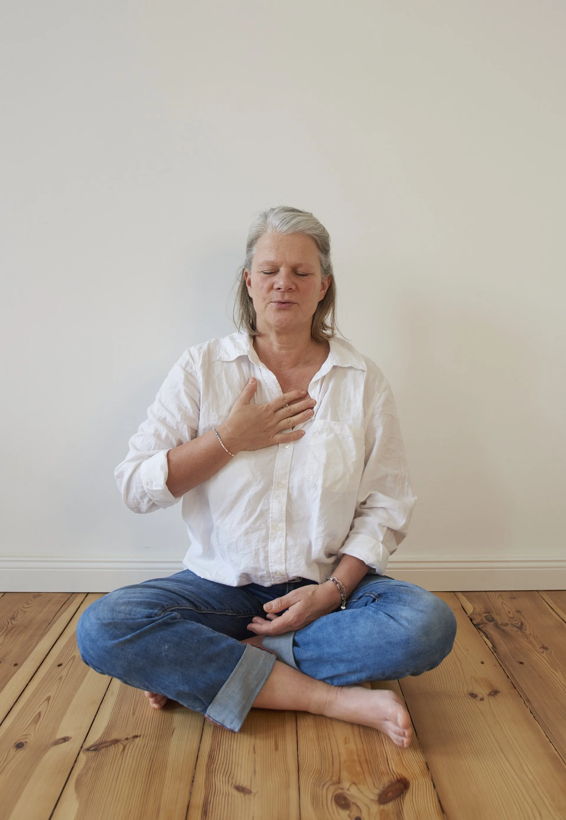 Wir beginnen mit einer geführten Atemssequenz.